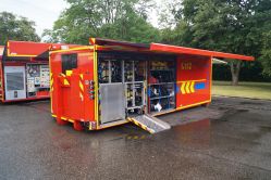 Die Einsatzfahrzeuge und Abrollbehälter an Feuerwache Ost:
